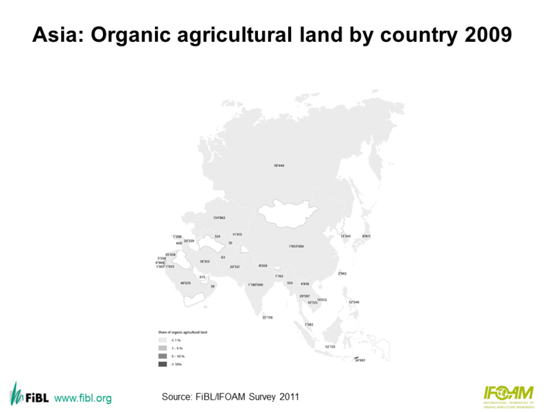 Map: Asia: Organic agricultural land by country 2009