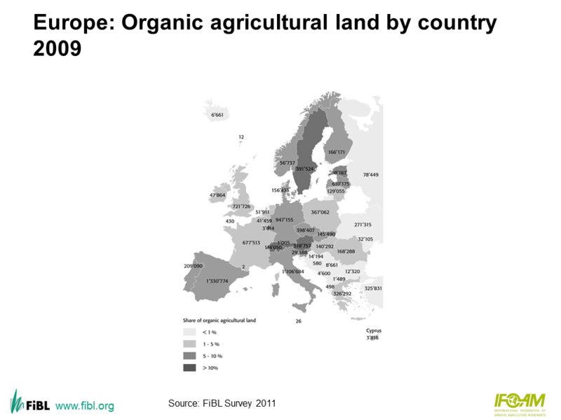 Map: Europe: Organic agricultural land by country 2009