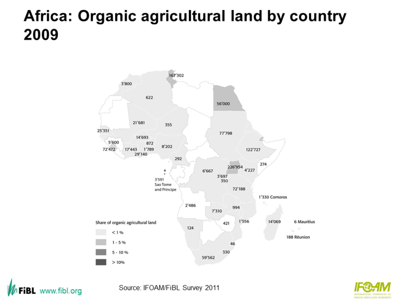 Map: Africa: Organic agricultural land by country 2009