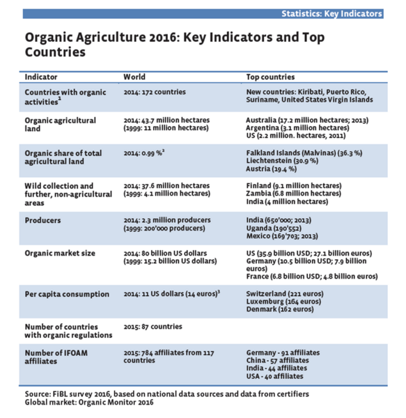 Key data on organic agriculture worldwide as published in "The World of Organic Agriculture 2016".