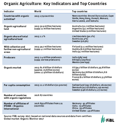 Key data on organic agriculture worldwide as published in "The World of Organic Agriculture 2017".