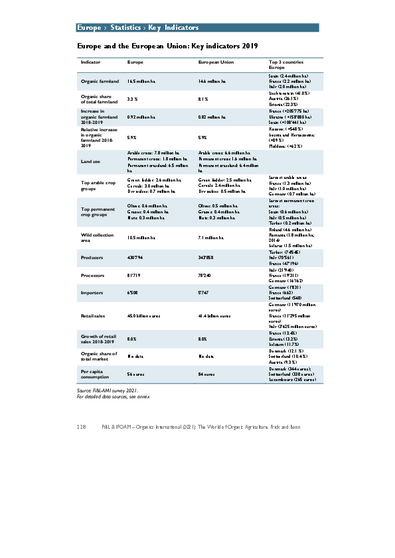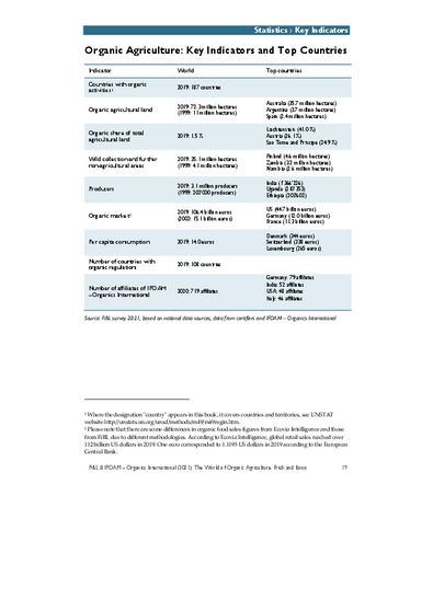 Key data on organic agriculture worldwide as published in "The World of Organic Agriculture 2021".